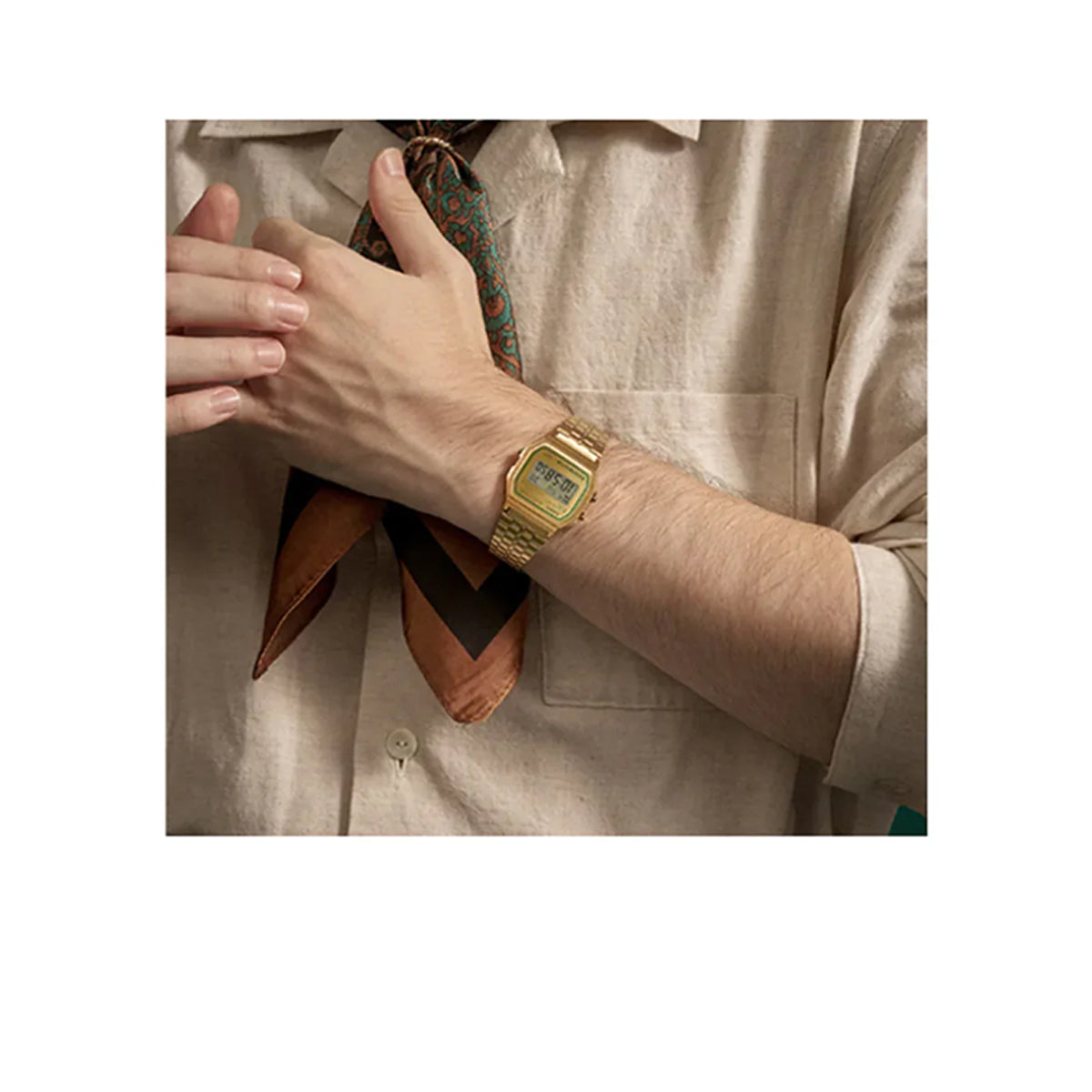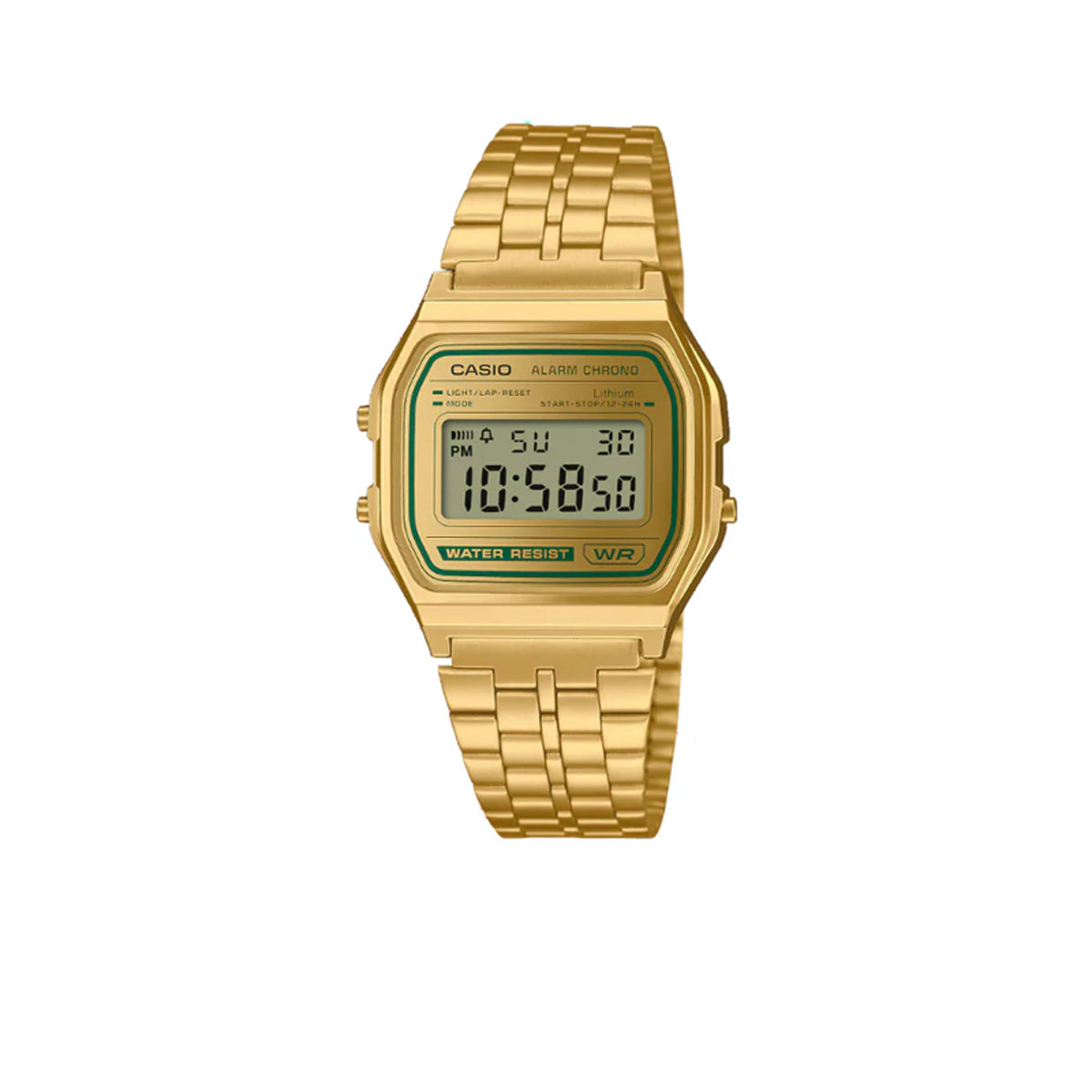 Effortlessly stylish and functional, the CASIO VINTAGE UNISEX WATCH A158WEGV-9ADF features a timeless gold and green color scheme. The matte finish metal bracelet and vapor-deposited watch glass add a luxurious touch to the classic design. With convenient features like LED backlight, stopwatch, and alarm, this watch is a must-have for any fashion-forward individual.