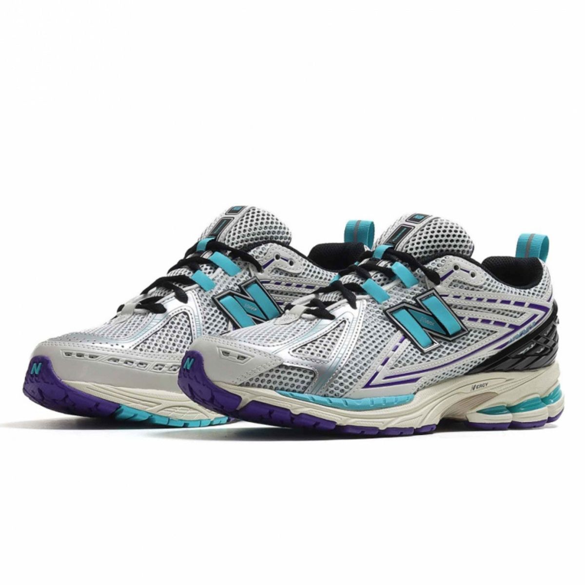 The New Balance 1906R Charlotte Hornets adds a colorway of aqua, purple, and black with metallic silver details to honor the Charlotte Hornets. The Charlotte Hornets New Balance 1906R, a technical running shoe, features the 1906R typical clear aesthetic with a breathable, open-hole mesh upper in off-white and supportive synthetic leather overlays. Aqua adds pops of color on the heel pull tab, the eyelet lace loops, sections of the midsole, the New Balance N and the 1906R lettering. The sneaker also features purple details on the overlays and the outsole. Finding inspiration in New Balance highly technical heritage, this sneaker incorporates elements found in the 2002R and the second version of the 860.