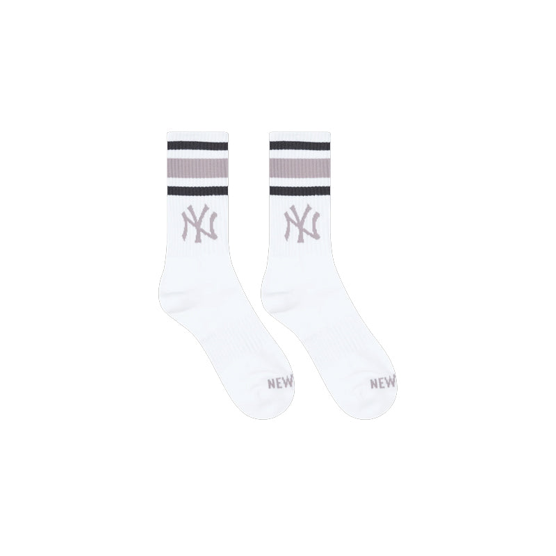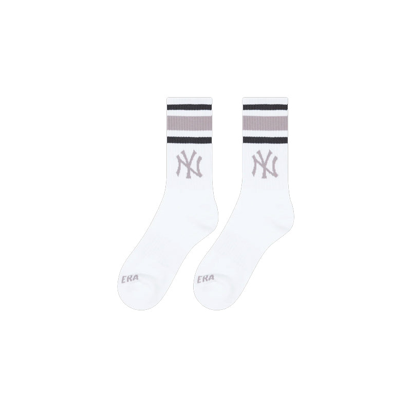 Power through your workout with the official New Era Color Era Rib Crew Socks. Two pairs per pack. Rendered in white, the design boasts colorful stripes near the cuffs, a Yankees emblem on the front and New Era wordmark on the arch bands. Both logos are embroidered in a matching color.