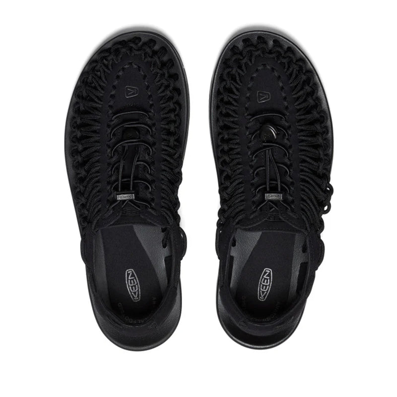 Keen Uneek "Black" shoes are revolutionary footwear that stands out for its innovative design and unrivaled comfort. Their upper part is made of a durable synthetic lace with quick-drying properties, which makes them an ideal choice for various activities. Unrivaled fit and comfort are ensured thanks to the anatomical PU foam insert, which emphasizes wearing comfort. The polyurethane sole guarantees excellent cushioning and stability at every step, allowing you to move freely in various terrain conditions. Additionally, the neoprene finish around the heel has a stabilizing effect, ensuring confident movement even on uneven surfaces.