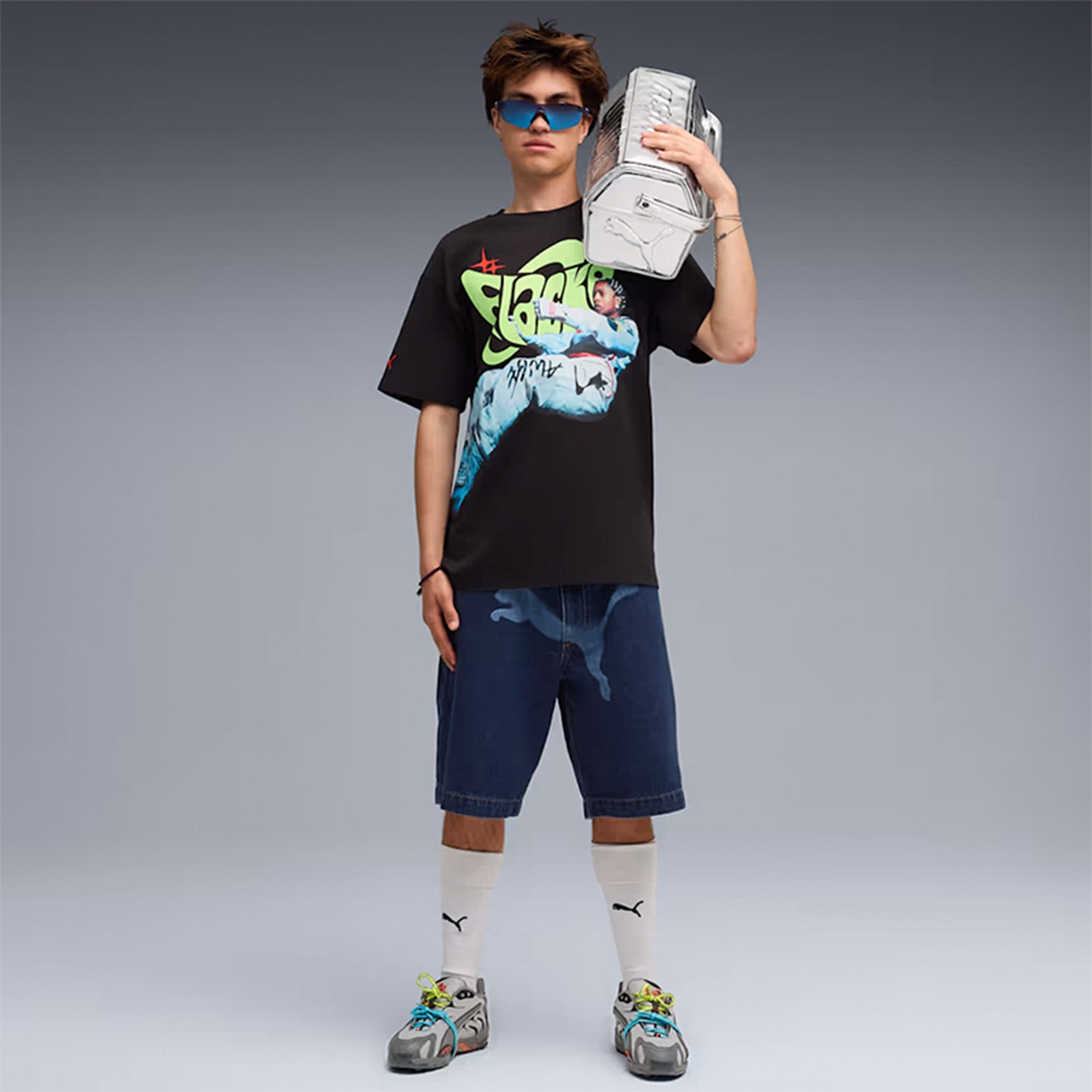 A$AP Rocky brings his signature aesthetic to a brand new capsule with PUMA, made for the concrete jungle. The collection fuses classic streetwear design with striking color pops, technical textures, and touches of motorsport DNA. Two of Rockyƒ??s favored PUMA sneakers ƒ?? Inhale and Mostro OG ƒ?? return alongside a bold new style and new personal Flacko favorite: Mostro Gabbia, built with a removable cage. Gritty, bold, and unapologetically A$AP, this drop is geared to stand out.